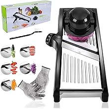 Masthome Mandolina de Cocina Profesional, Cortador de Verdura con Cuchillas Afiladas, Inoxidable Ajustable, Mandolinas para Verduras, Cebollas - con Guantes a Prueba de Cortes y Cepillo de Limpieza